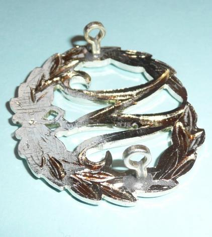 Not encountered very often, in gold coloured anodised, with two original loops to the reverse. Circa 5.4 cm across and although with some minor service wear obvious to the finish in good condition. Introduced 1957 for qualified mortar layers and worn on lower left sleeve.