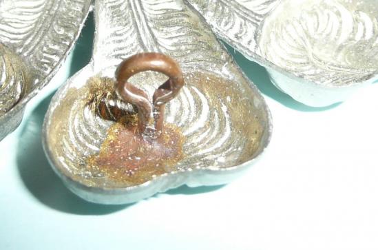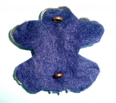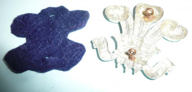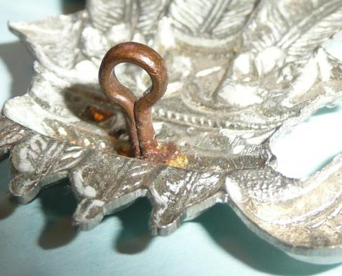 A large white metal die struck example with two original loops (north-south). Dark blue felt backing. Circa 5.6cm tall and 5.8cm wide. In very good condition. C23.1