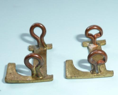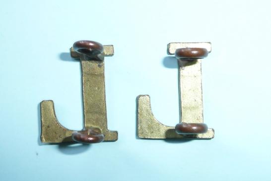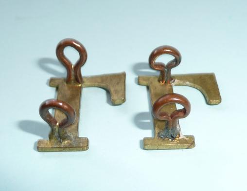A pair of single L shoulder titles as worn by Lancer regiments with separate brass numerals. Worn by the Lancer regiments between 1900 and 1913. Circa 20mm tall and 15mm wide. Each with two original loops to the reverse (not matching in loop configuration but a reasonably good match from the front). Scarce.