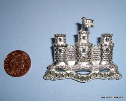 A heavy cast attractive pipers badge with two original lugs to the reverse. Chrome plated finish. In excellent condition. Circa 5.6cm wide and 4.6cm tall. Comm JoPa