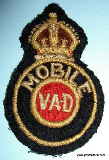 WW2 British Red Cross Mobile Voluntary Aid Detachment ( VAD ) Cloth Arm Badges / Shoulder Title /Insignia