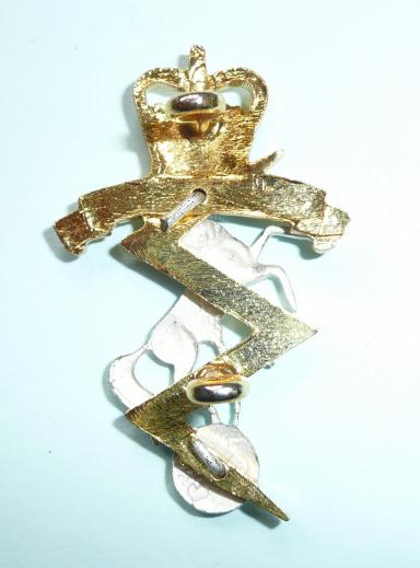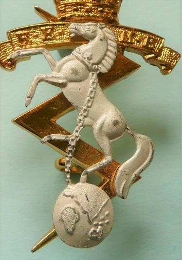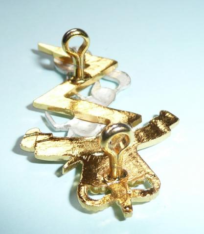 Gilt and white paint(?) finish with two original loops to the reverse. In good condition. The white paint finish is a puzzle (for me at least!). D80.5