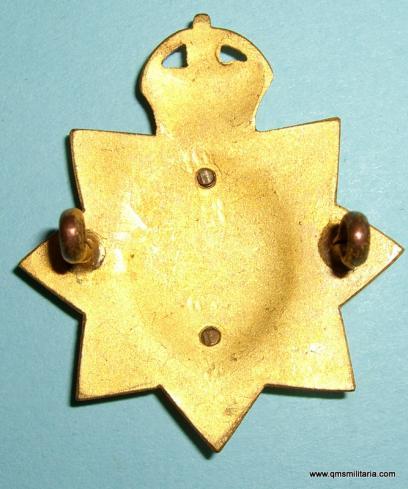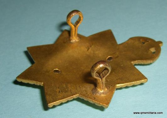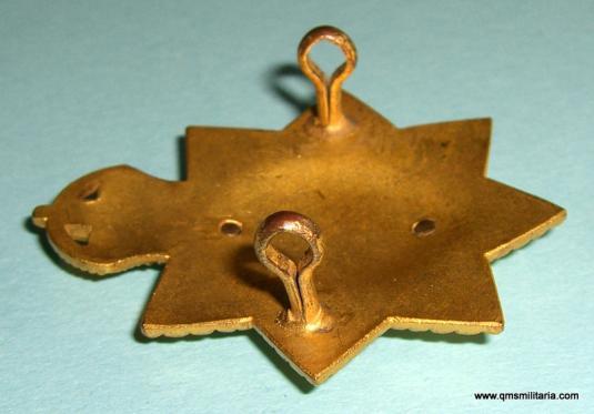 Stunning English made die-cast fire gilt crowned star mounted with silvered “ De Bon Vouloir Servir Le Roi ” bearing “PLH” to centre. Circa 4.5cm tall with two original loops to the reverse. Great condition.