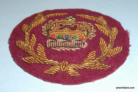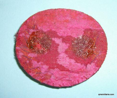Attractive and bright condition with maroon backing. Evidence of glue on reverse from being removed from uniform. Circa 5cm across and 4,5 cm tall.