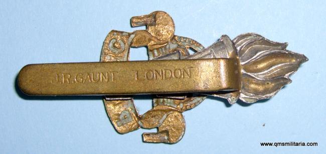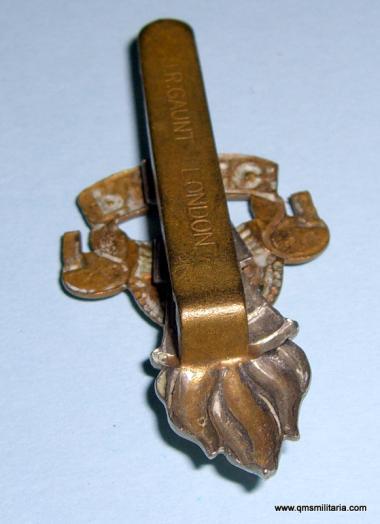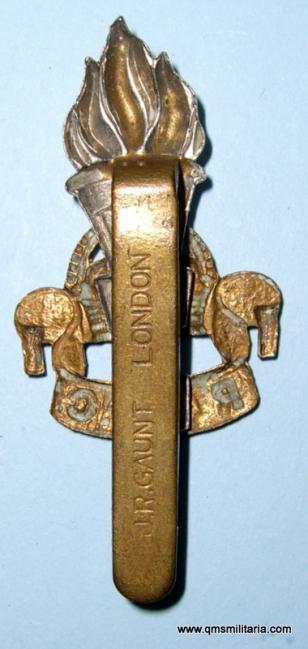 2nd pattern bi-metal cap badge, worn only 1946 to 1952 (with a King's Crown). Original slider maker marked JR Gaunt London (large pattern lettering with no full stop). Light polishing to high points but otherwise very good condition.
