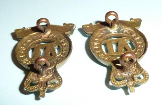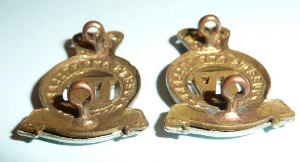A lovely pair of collar badges matching, with two original loops to the reverse of each. Sharp detail. Queen's crown. E67.18