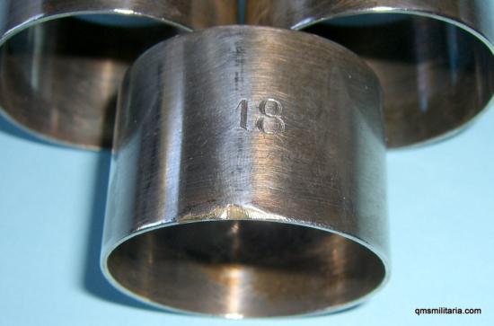 A lot of quantity three silver plated (unmarked) napkin rings from the 6th Territorial Battalion of the Royal Northumberland Fusiliers (HQ Newcastle ). Each one has been attractively engraved with the Regimental Crest. On the reverse they each have a unique number. Slight damage to edge of the reverse of the one numbered "18", otherwise in very good condition, some dark toning to silver but they polish up nicely with a sliver cloth. Each one is 4.1cm in diameter and 2.9cm tall.