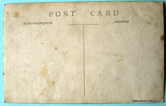 Posed original photo, one can just make out a curved metal shoulder title with a T above, but other than that, he remains unidentified. Good to have a clear image of the volunteered for overseas service bar. Postally unused, minor corner wear, otherwise in good condition if not a little grubby.
