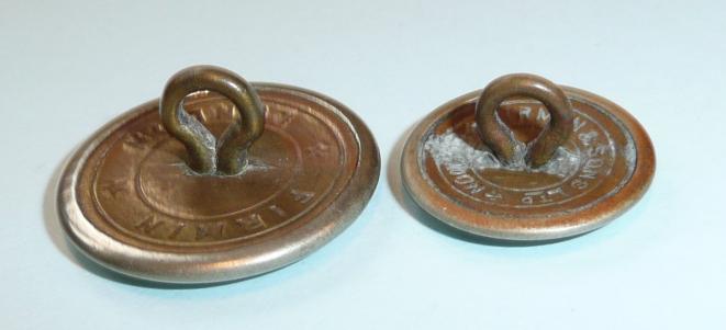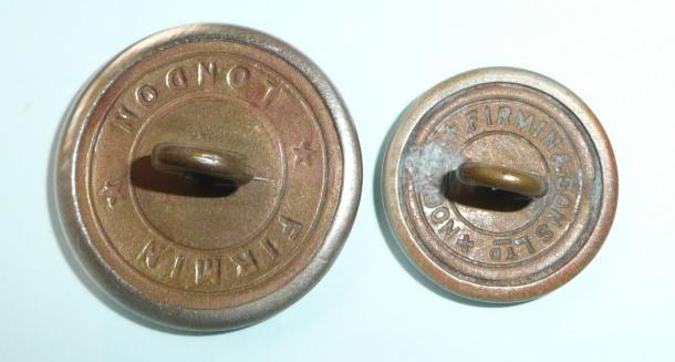 A pair of flat silver plated buttons with fixed shanks, circa 23mm and 17.5mm respectively and both Firmin London made. In very good condition.