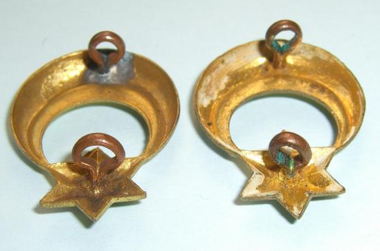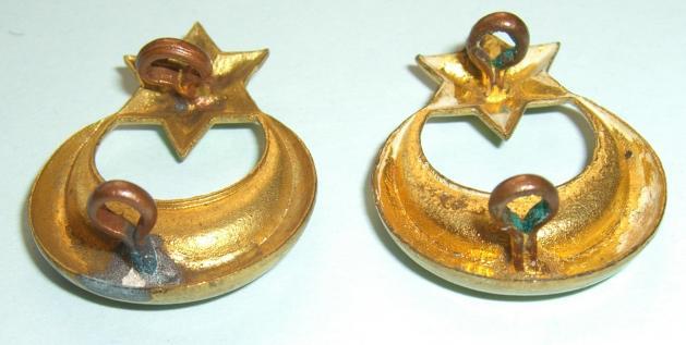 An attractive pair of gilt brass metal collar badges each with two original loops to the reverse. Apparently they depict the coat of arms of Hungerford. In good condition and one with small stain to base of crescent.