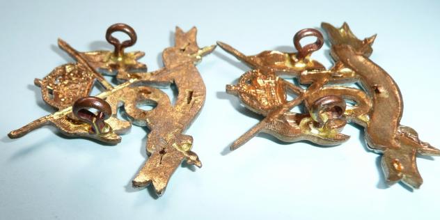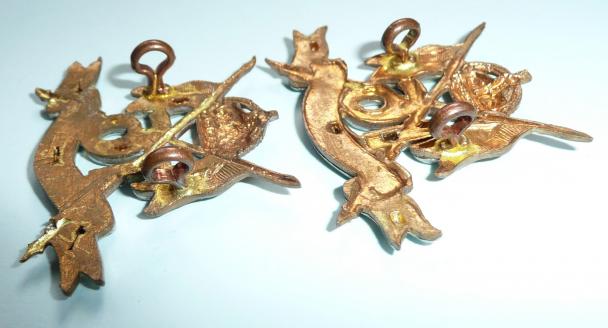 A good pair of collar badges almost an exact match but with some slight differences and hard to discern from the front. Two original loops to the reverse of each with sweat / braising / expansion holes to rear. Sharp detail and with no damage to lance pennons.