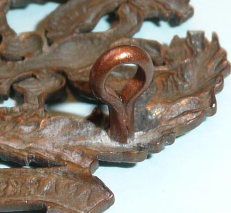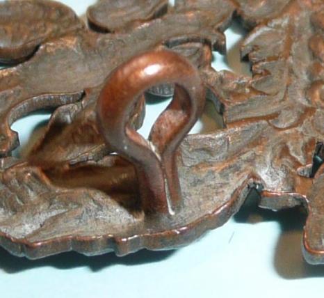 The double-headed eagle, in die struck bronze with two original loops to the reverse, from the Arms of the Royal Burgh of Lanark within a wreath of thistle above the tri-part title scroll. In very good condition. Worn 1902 - 1908 only.