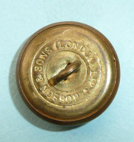 Circa 24mm in diameter, fixed shank, maker marked Hobson & Sons (London) Ltd. King's crown. It depicts the badge of this officer's training corps on the button. In very good condition. Pre 1952. Not often encountered.