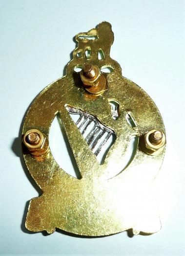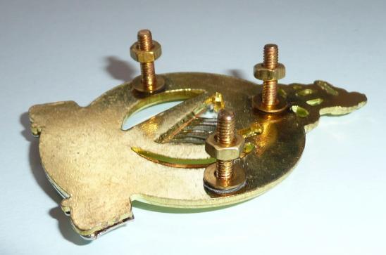 A scarce post 1958 die cast bi-metal piper's pouch example with three screw posts and nuts to the reverse. Some minor twisting to screw post otherwise in excellent condition. Worn until 1993.