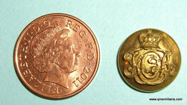 A very scarce gilt button, two piece construction, fixed shank, back marked Jennens & Co, London. A small demi-ball button at circa 13mm in diameter. Gilt bright, in extremely good condition. The cypher on most of these buttons were extremely hard to read, but this one is simple with the letters KOR entwined below a Victorian crown.
