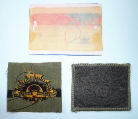 The Australian Flag (edges taped over to reverse), and two flashes, Australian Military Forces embroidered in silk thread (QEII issue) and a later version the Australian Army. D80.2