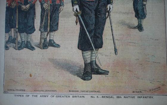 In good clean condition, slight yellowing to paper and minor rust to central staples. Some good images, military bias, interesting adverts. Bengal 18th Native Infantry to front cover.