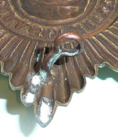 Circa 8cm across, with two original dark toned loops to the reverse. Some bending to loops otherwise In good condition. The final photo shows this item against a cap badge in a 'little and large' comparison. The cap badge is for sale elsewhere and not included with this lot.