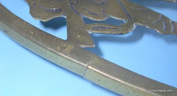 A rare item to find, in brass and 22cm long and good used condition, with signs of polishing. Its one defect is a single and small old edge split in the brass near gun butt that has not gone through and the structure is still strong (see photo).