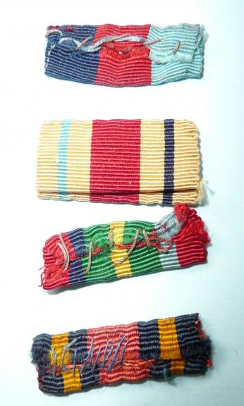Removed from uniform, useful if you need some ribbon bars to finish off a post war battledress tunic or anything else you may require them for. 1939-45 Star, Africa Star, Burma Star and Pacific Star. All sewn shut with the exception of the Africa Star. Not metal or card inserts.