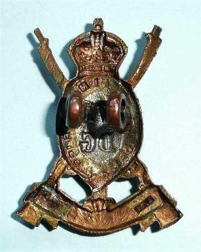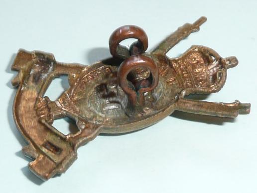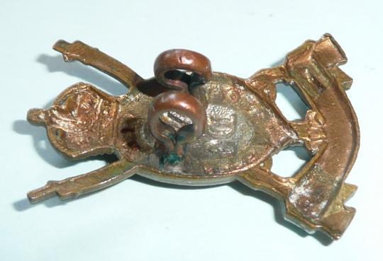 An early single bi-metal collar badges with two original dark toned loops to reverse. Signs of minor service wear but in good condition. King's crown. 1902 - 1922.