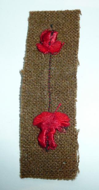 WW2 Red Embroidered Wound Stripe on Khaki Panel - Authorised for wear by serving WW2 Army Personnel wounded in WW1 and other prior conflicts