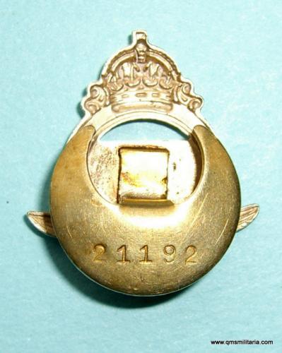 A scarce Second World War period unmarked silver 'Royal Air Force Volunteer Reserve badge', made by the Royal Mint and with official Air Ministry issue number "21192”. Very good condition, retaining original brass buttonhole fitting. Circa 2.3cm tall.