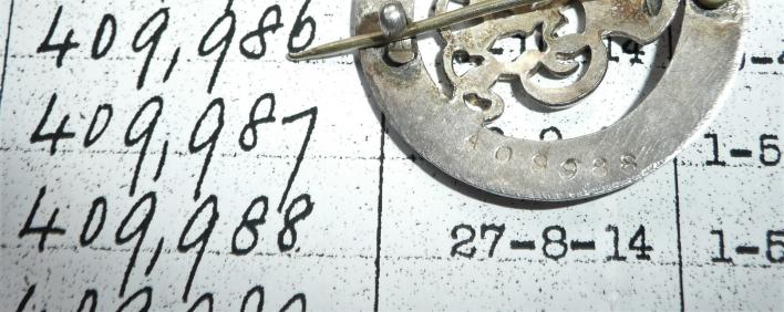 A SWB impressed 409988 to Gunner Cyril Thornelow, discharged from the 4th Depot (Territorial) of the Royal Field Artillery (RFA). Cleaned and in very good condition with fully functional and original pin and C clasp (slight twisting).