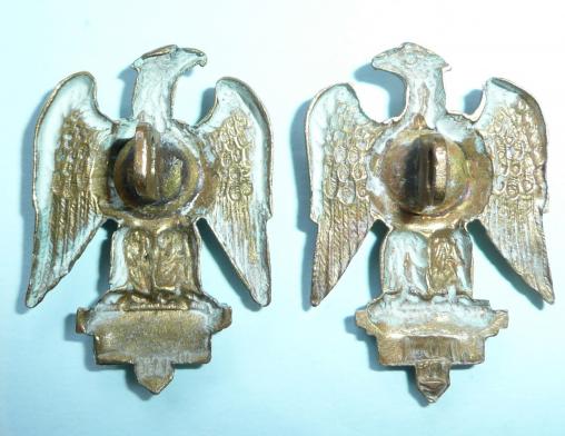 A facing pair of bi-metal collar badges each with strong single central loop to the reverse. A close rather than an exact match. In very good condition. G64.2