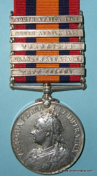 QSA Queens South Africa Medal 1899 - 1902 Frederick D. Curl 10th Royal Hussars - Died of Wounds in WW1 at Ypres on 30th October 1914