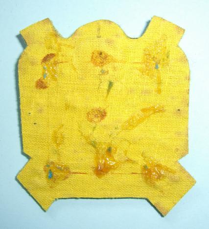 A nicely padded example in silver and gold bullion thread on a yellow and blue background (blue behind the tablet Waterloo ). Circa 1971 onwards. In great condition with some small glue traces to reverse.