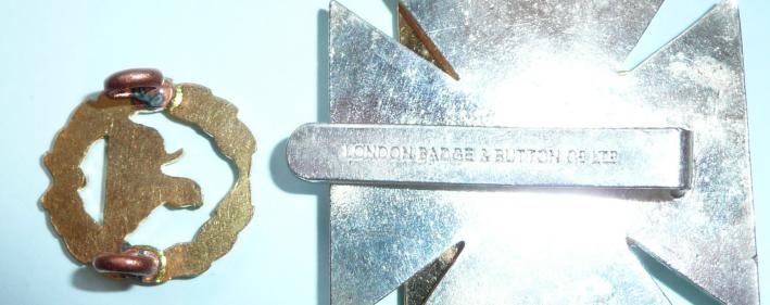 Cap and back badge set. In very good condition. Cap badge maker marked London Badge & Button Co Ltd.