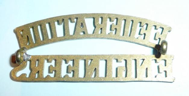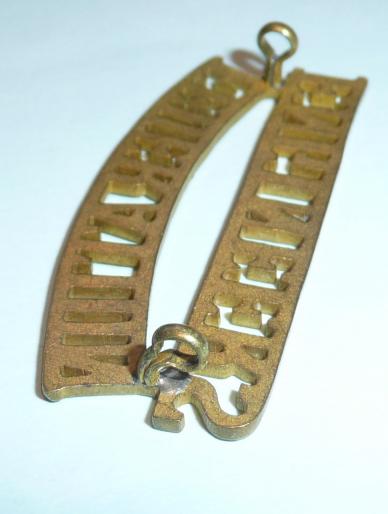Officer quality shoulder title with two small loops to the reverse. Slight twist to one lug. In excellent condition.