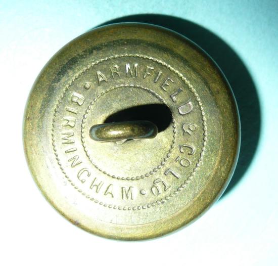 Circa 26mm in diameter, fixed shank and maker marked Armfield & Co Ltd, Birmingham. In good condition, some polishing to highpoints. Gilt dulled and some staining. Medium pattern button also available if of interest, please email.