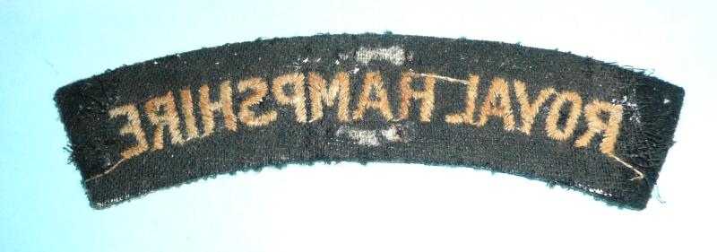 Royal Hampshire, post 1946 Embroidered Yellow / Amber on Black Cloth Shoulder Title. Removed from uniform. In good overall condition. Comm RoHa (B3)