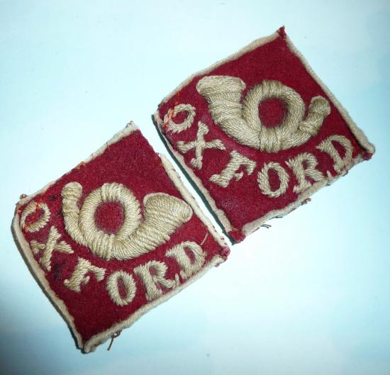 Oxfordshire Light Infantry Boer War Period Cut Down Matched and Facing Cloth Woven Shoulder Titles
