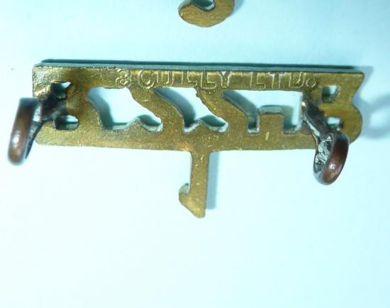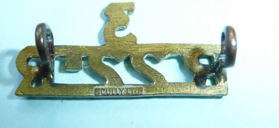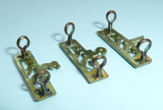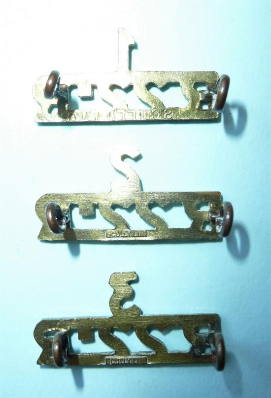 A nice set of small pattern brass shoulder titles to the 1st, 2nd and 3rd Battalions. Two original loops to the reverse of each and maker marked Scully Ltd. In very good condition.