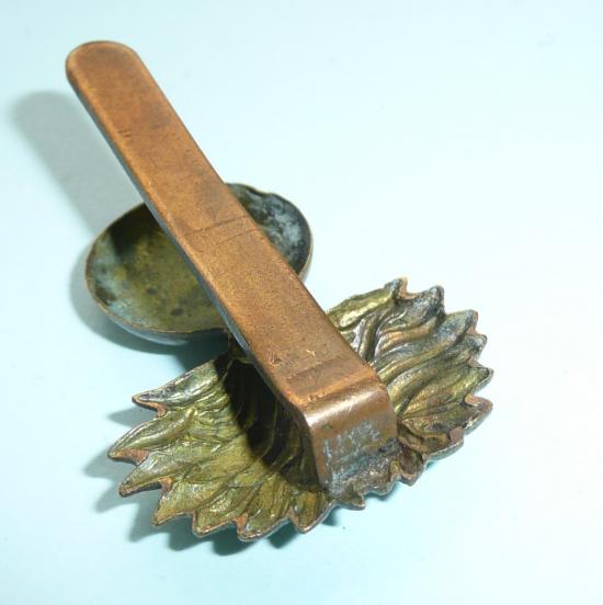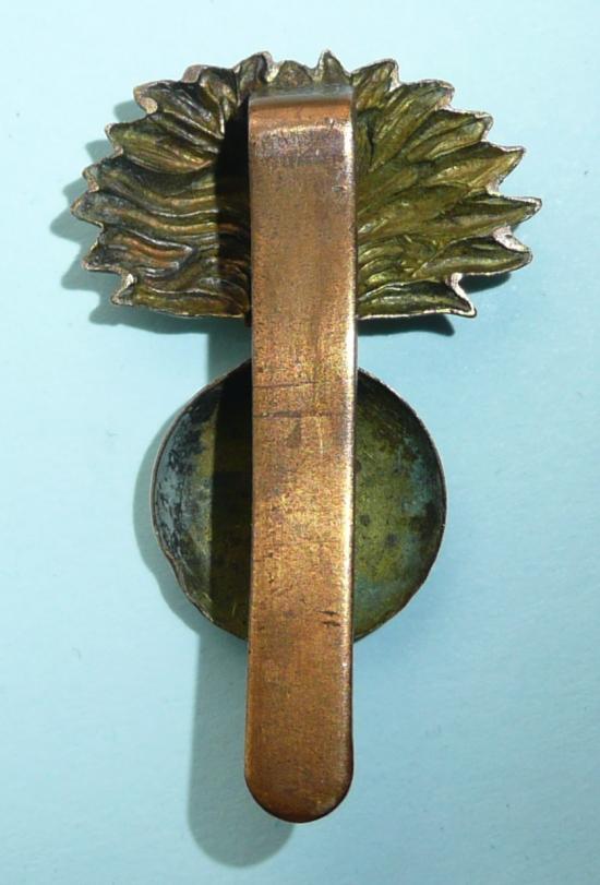 Brass die struck cap badge with original slider to the reverse worn by Bandsmen of the Regiment. A small fused grenade. This pattern unique to Royal Scots Greys. In very good condition.
