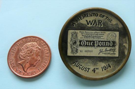 Memento of the Great War - 4th August 1914 - Tinnie celebrating the Birth of the Treasury One Pound Note or Bradbury!