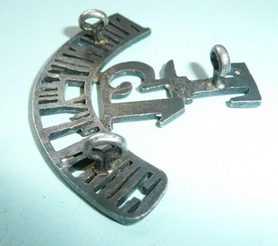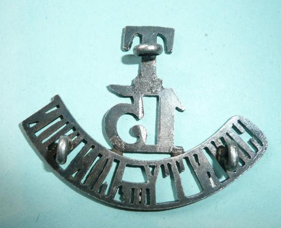 A superb silver plated 'walking out' pattern one piece shoulder title with three silvered original loops to the reverse. In very good condition.
