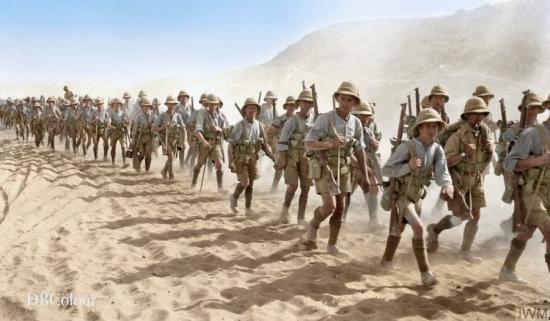 The final photo shows the men of the 5th Buffs in 1917 marching in Mesopotamia (now Iraq). It is part of the IWM collection (acknowledged with thanks) and the colourisation project (also acknowledged with thanks). This image is not for sale with this lot but can be found on the internet.