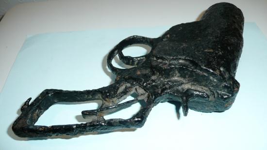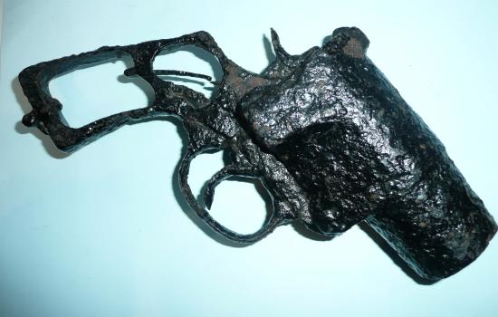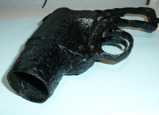 An absolute monster in the hand and of considerable weight. The flare pistol was a feature of every day life in the trenches but this one looks larger than those found as issued to the British Army with a 1.5 inch muzzle. Apparently this is a RAF issue recovered from the seabed. This is completely seized up so no need for a firearms licence and I cannot see any markings. Painted with black paint to preserve it. A truely stunning item. Any additional information welcome.