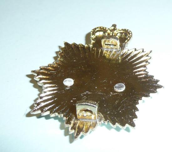 Gold coloured star with riveted central silver coloured and enamel device. Two original square loops to the reverse. In very good condition. Worn from 1962.