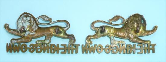 The Kings Own Loyal Regiment (Lancaster) Warrant Officers Matching Pair of Gilt Brass Collar Badges