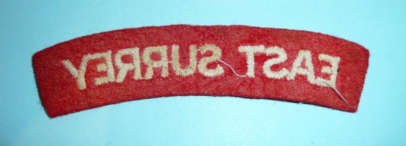 WW2 East Surrey Regiment White on Red Embroidered Cloth Shoulder Title