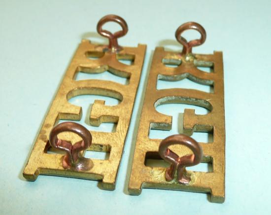 A matched pair of brass shoulder titles with two original loops to the reverse of each. In very good condition. Worn without the 'Y' above from 1950 onwards.