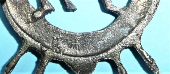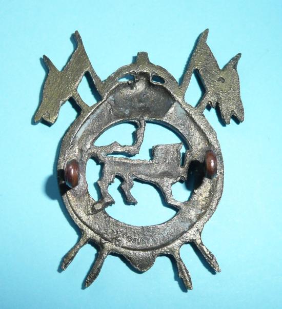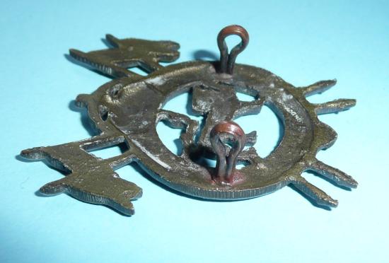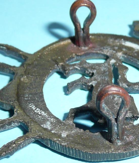 A good scarce post 1922 - 1947 Indian made die cast brass example. Two loops to the reverse. Taken from a gaunt example (feint naming still evident on this cast version). In very good condition.