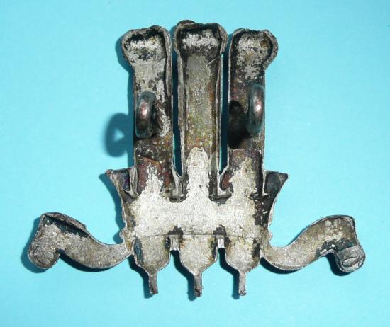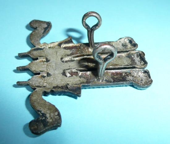 An attractive die cast silver plated cap badge as worn by British Officers on the white Wolesley Tropical Sun Helmet from 1931 to 1941; and also as a trial pattern (not adopted in the end) for Gurkha Officers in 1962. In very good condition with sharp detail and two long silver plated loops to the reverse.