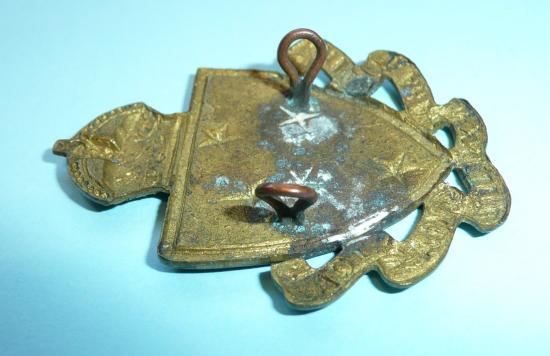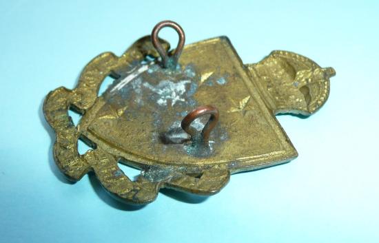 Die struck with a gilt wash (now polished back to brass on most of the shield which gives it a very attractive patina) with two original copper loops to the reverse. Scarce.