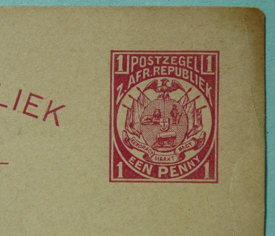 ZAR (Transvaal Republic) Postcard One Penny Red Pre Printed Postcard, 1885